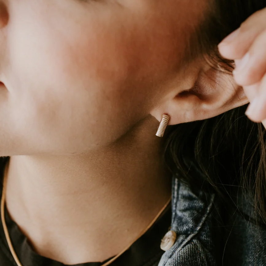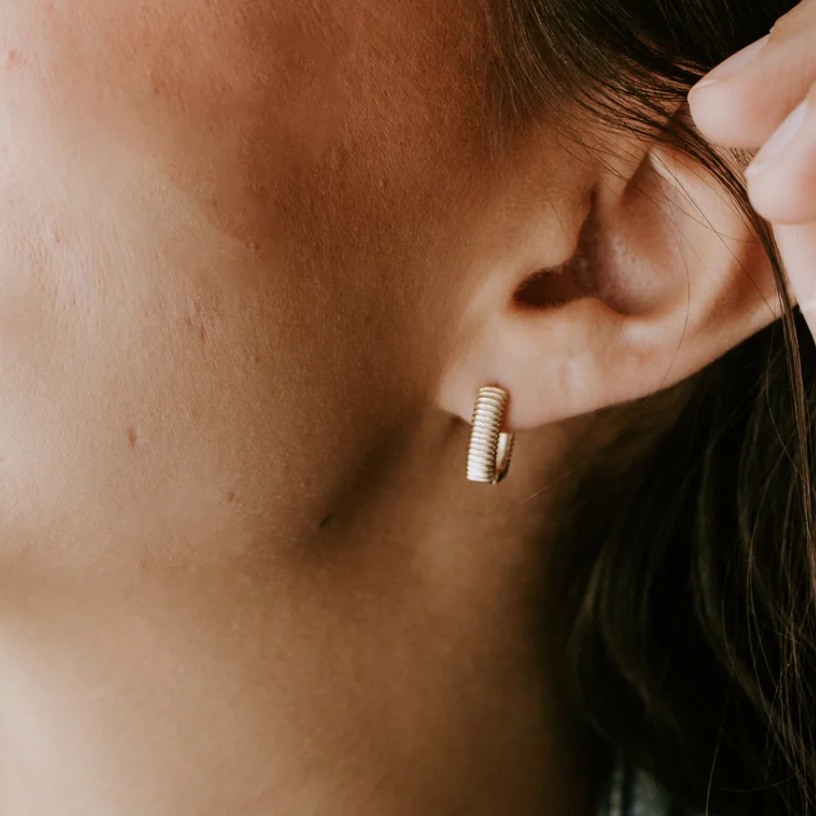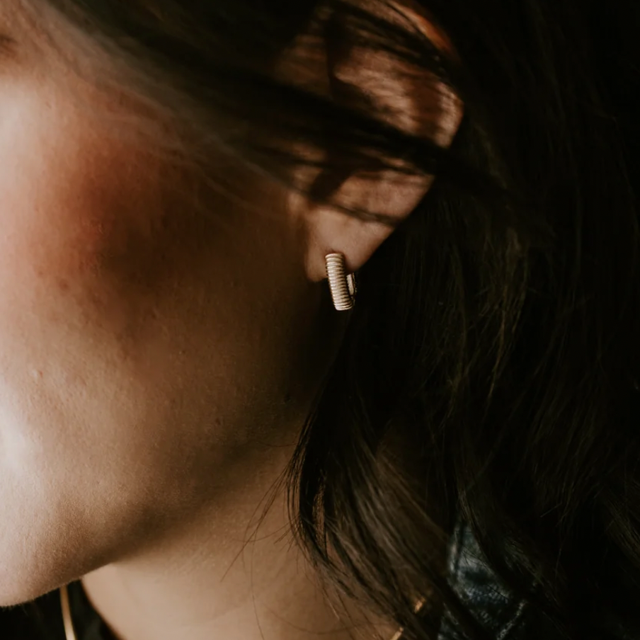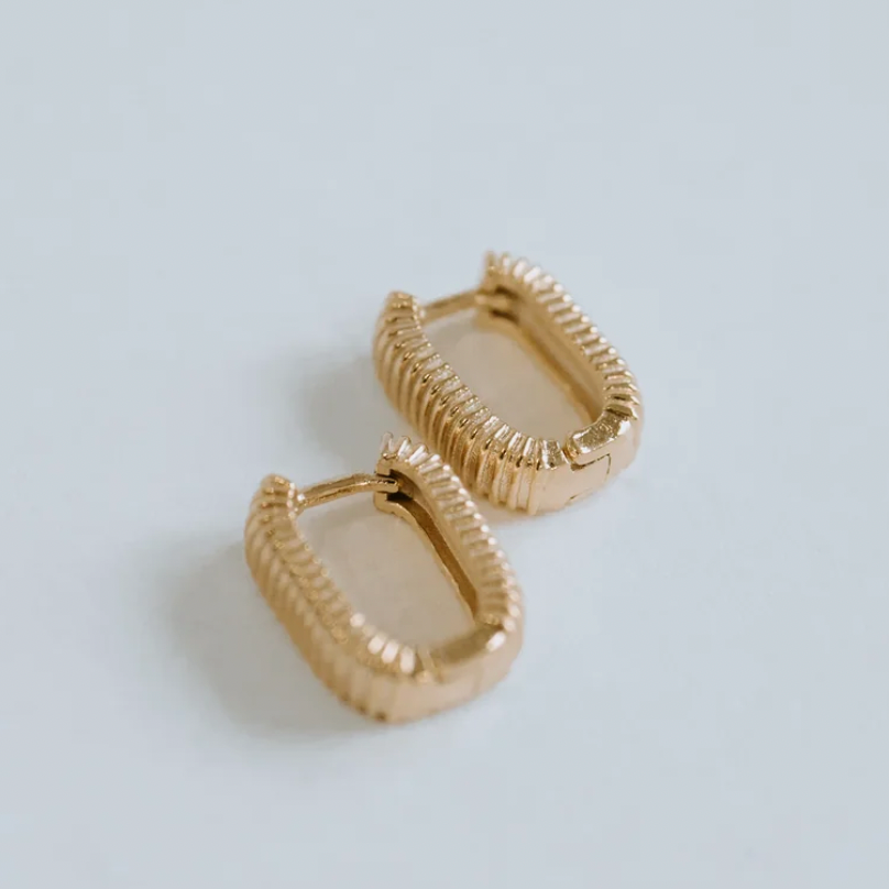Add a playful touch to your jewelry collection with our Pleated Rectangle Huggies.
