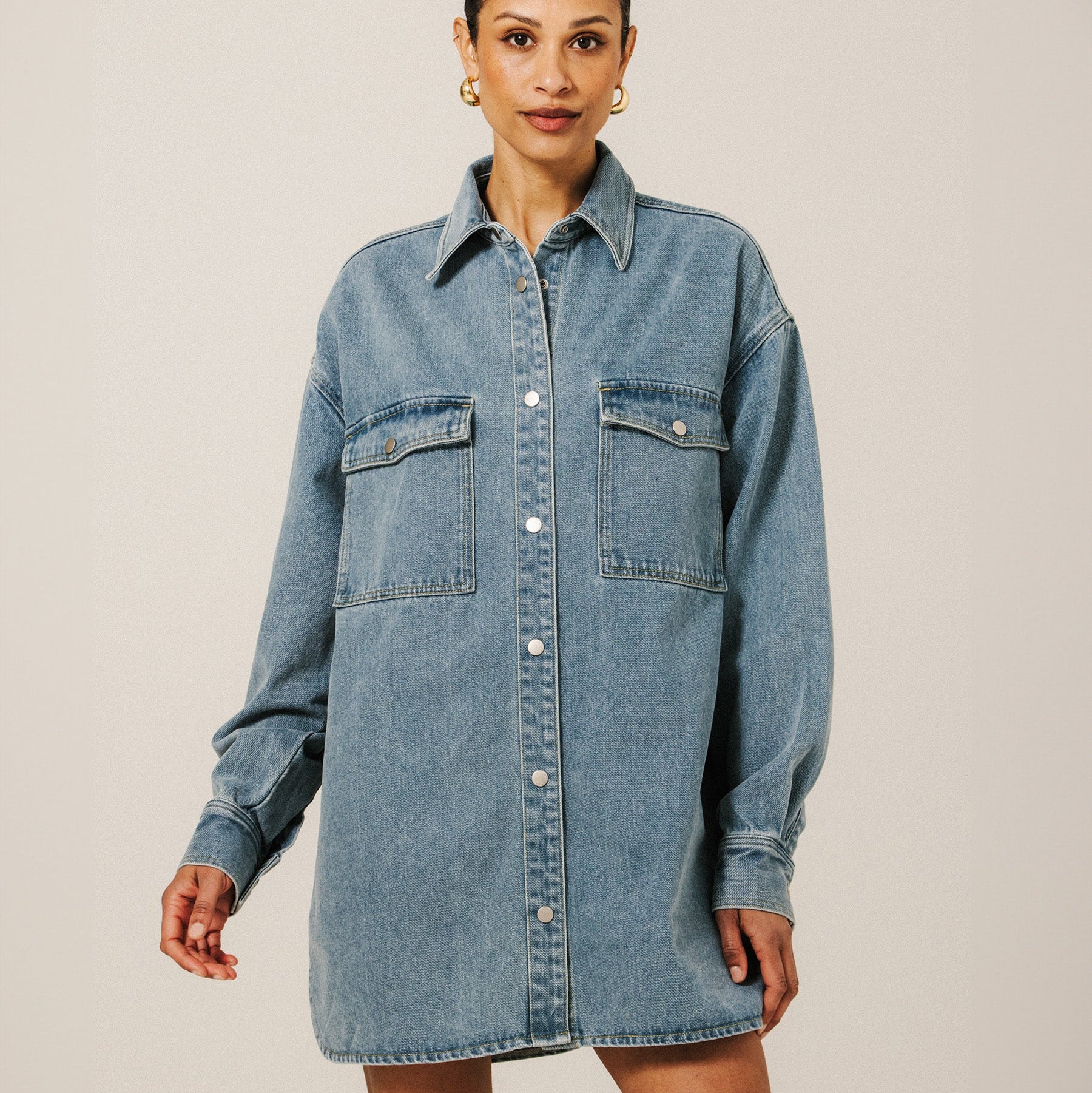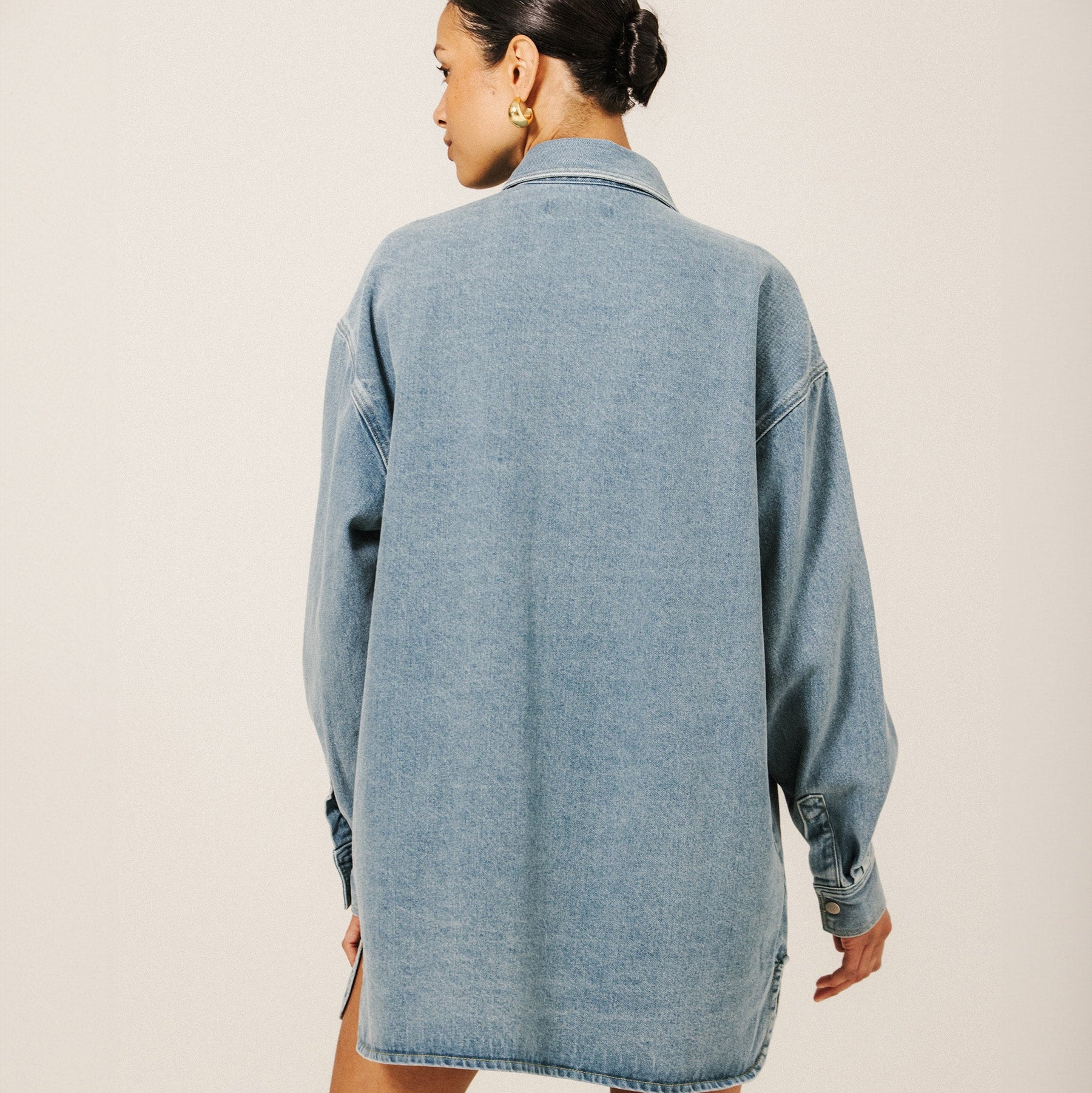 We took your feedback to heart - she was a tad too oversized - so we made her slightly less wide while keeping the length. You can still style her as a dress!