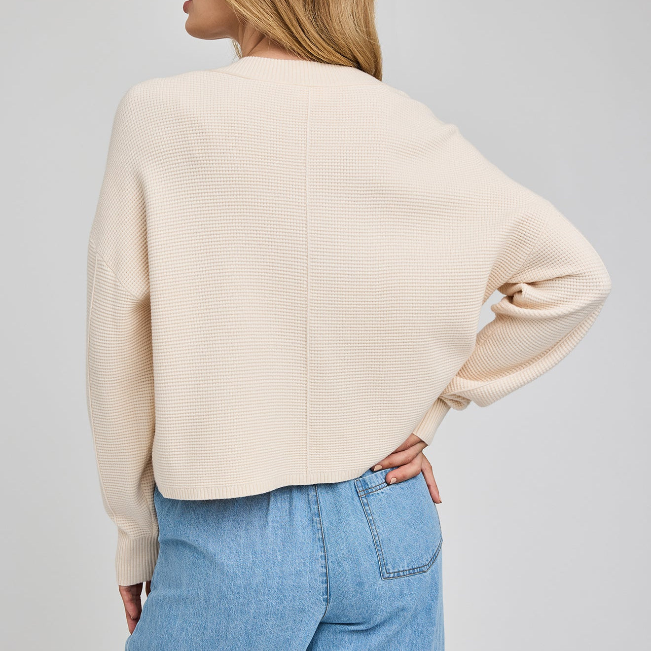 The Joyce Cardigan wraps you in cozy comfort with its soft, textured waffle stitch and effortless oversized silhouette.