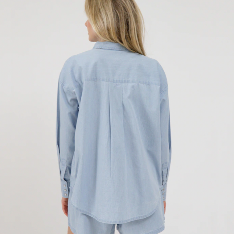 Elevate your casual wardrobe with our premium Chambray Button Up featuring elegant pearl snap closures.