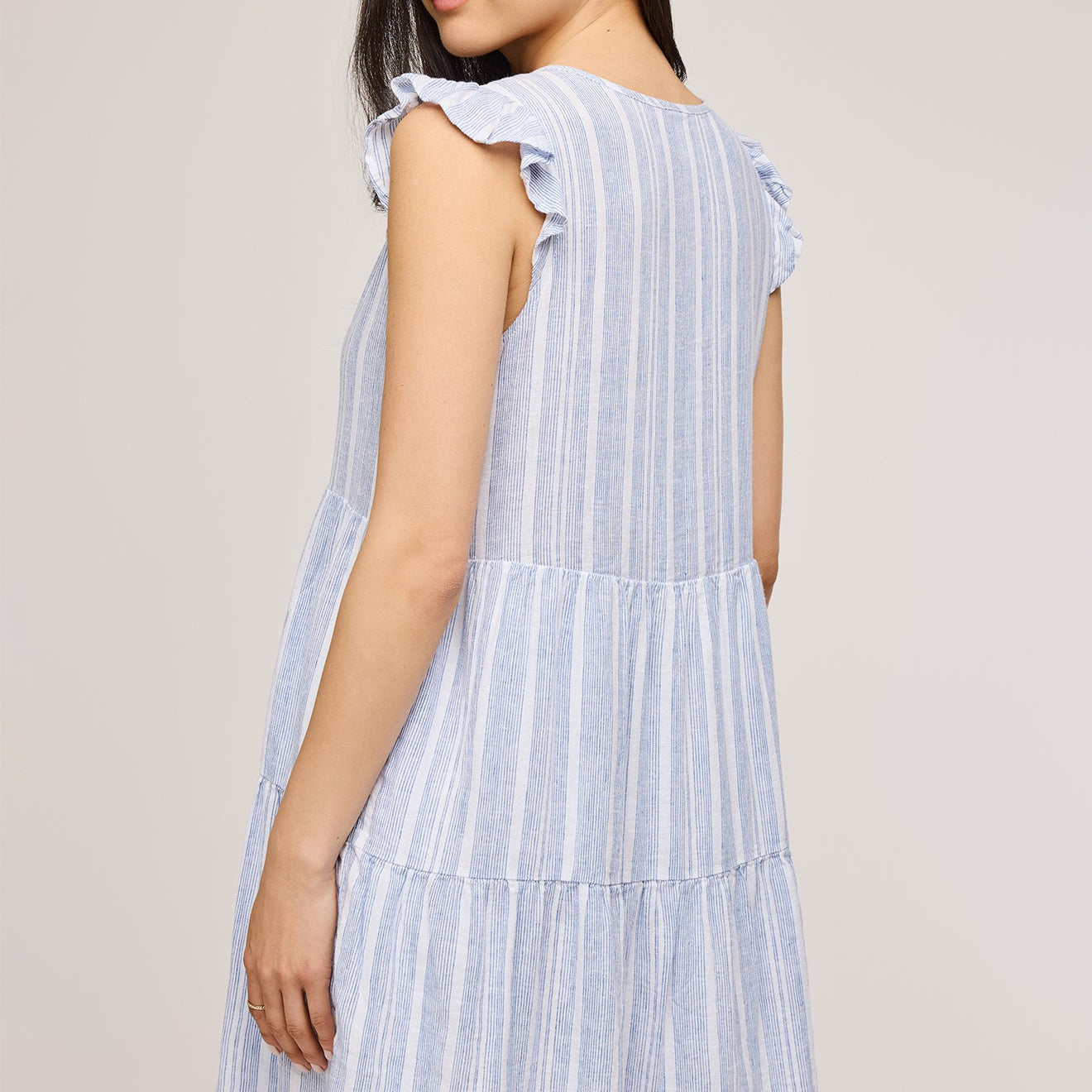 The Maggie Dress elevates your wardrobe with its premium striped linen blend that's refreshingly lightweight for all-day comfort.